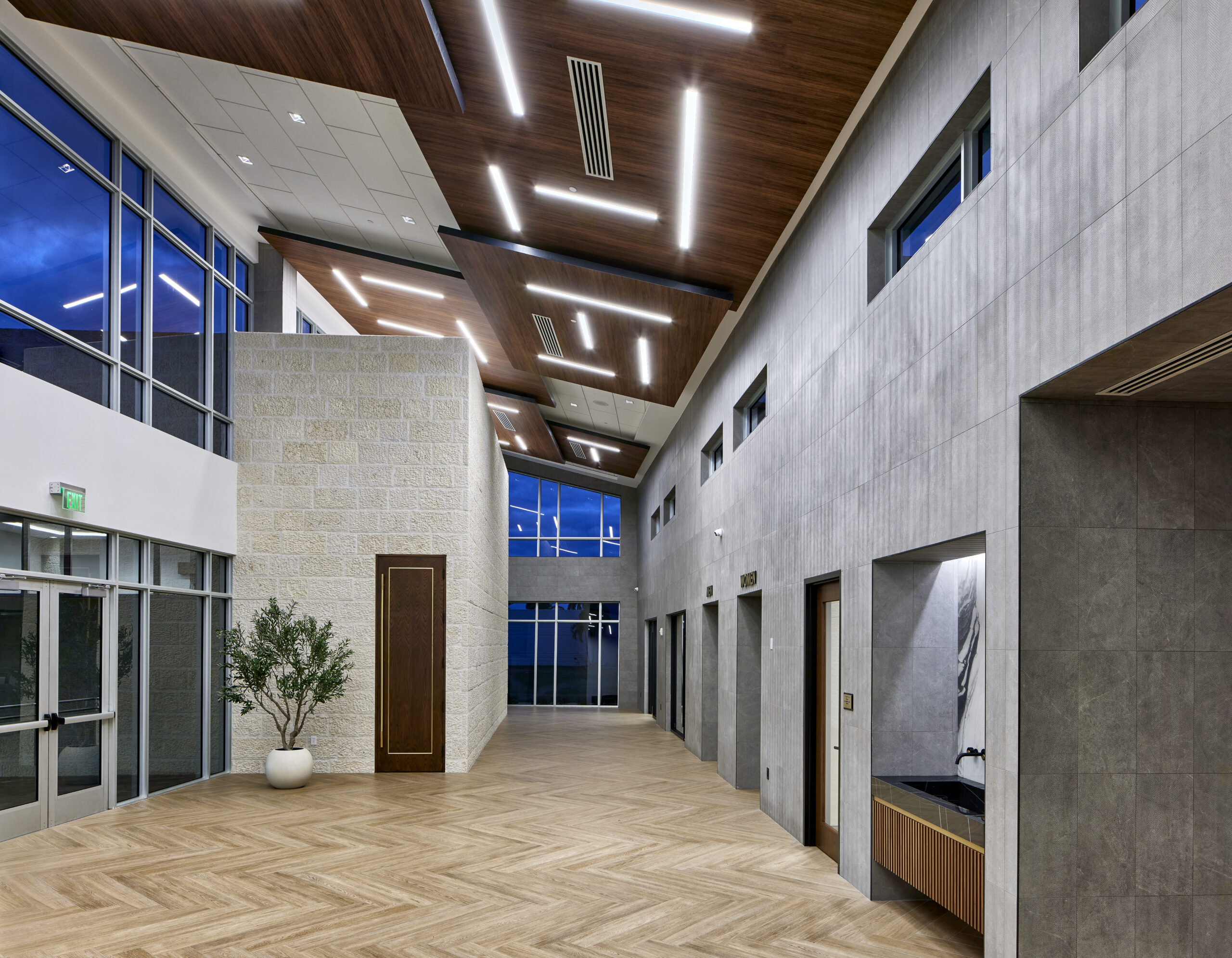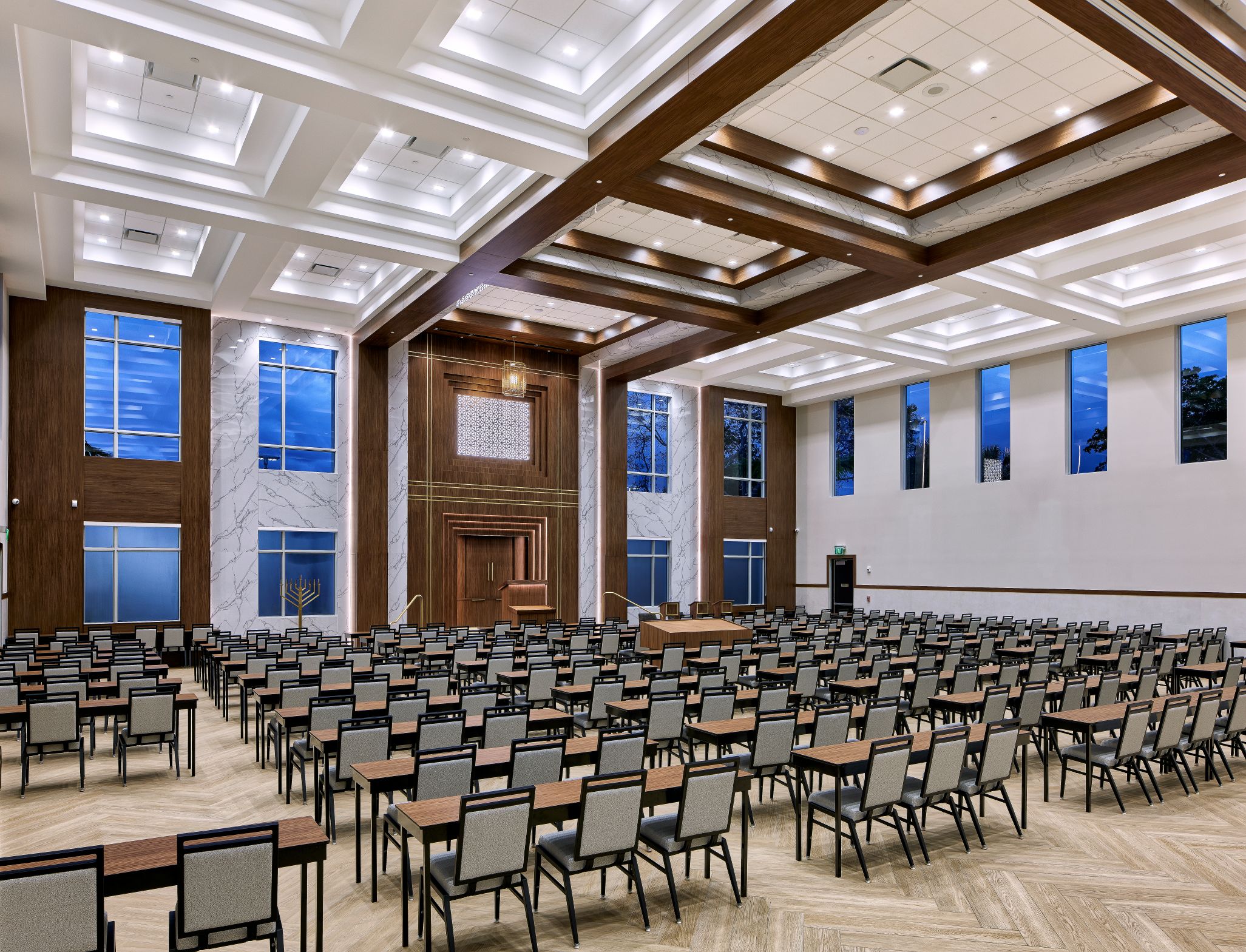 Design and construction of a 10,000 SF, ground-up synagogue building featuring prayer and community gathering spaces, a kitchen, offices, classrooms, a library, an outdoor playground, and recreation areas.